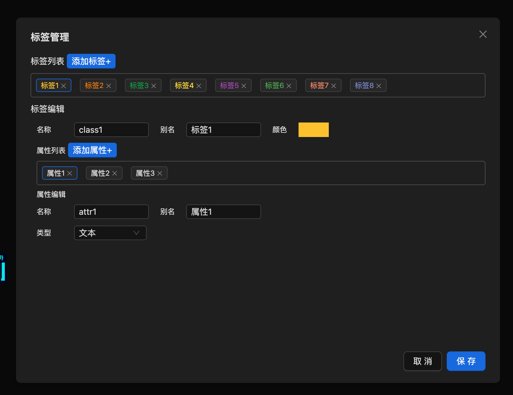 内置基本的标签创建、编辑、删除功能