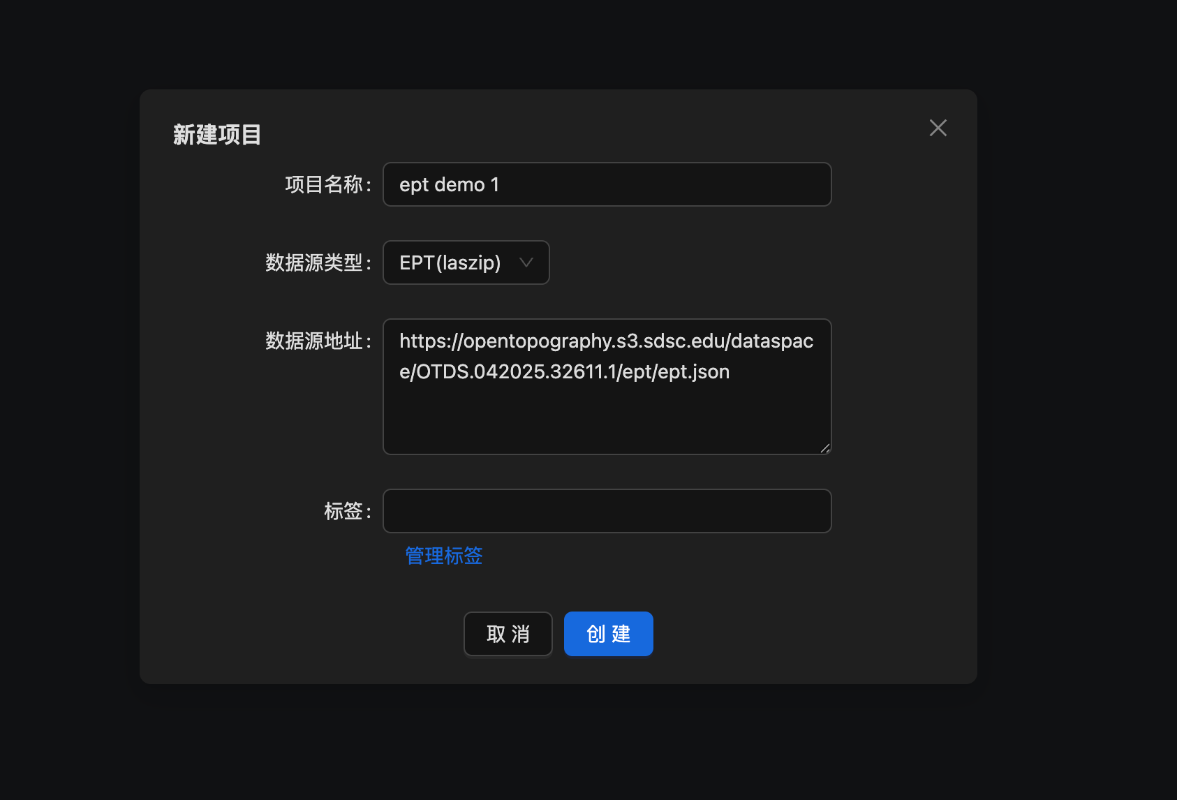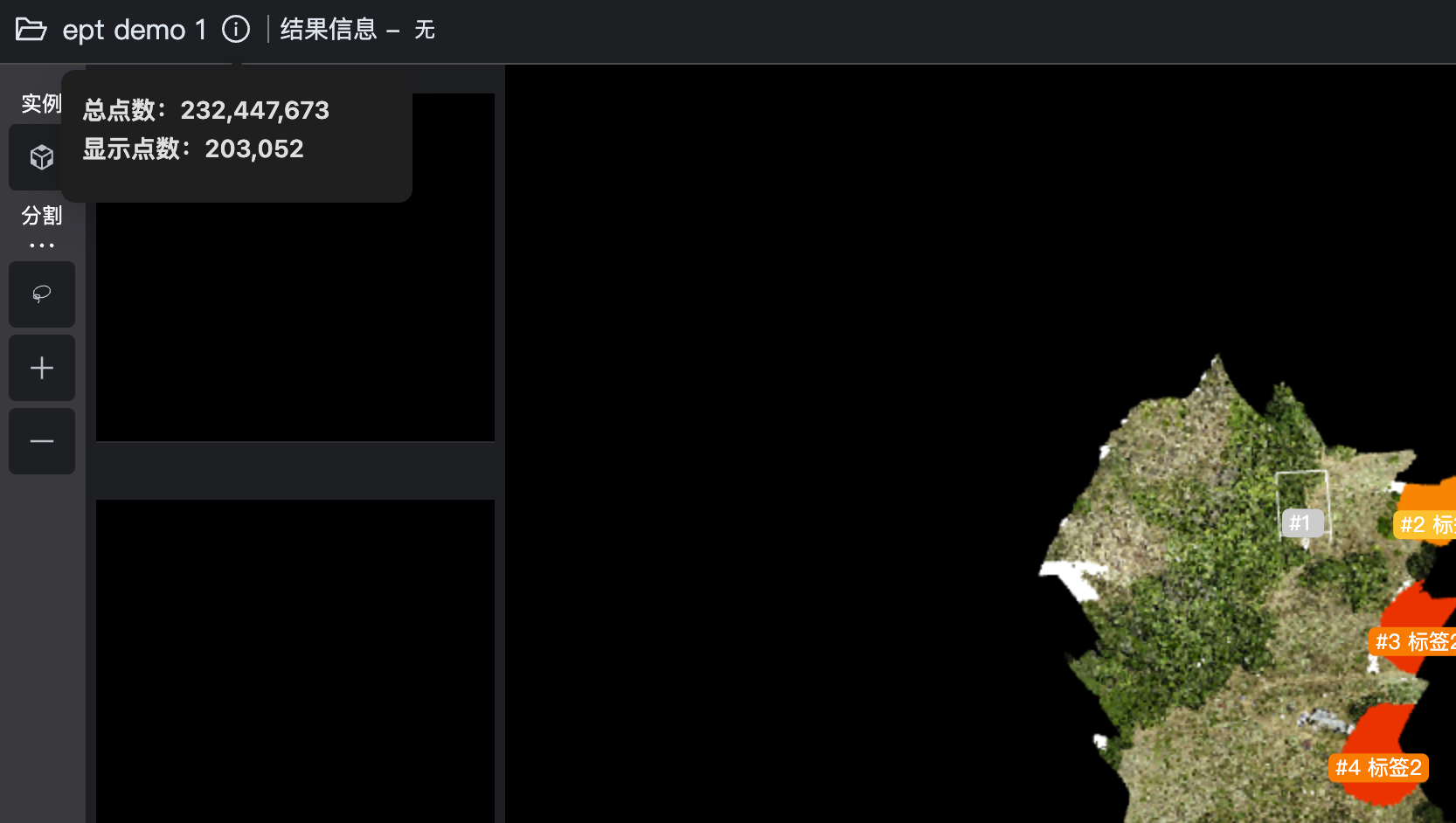 暂时只支持EPT(laszip)格式,后期会支持Potree格式和单文件(PCD)等加载